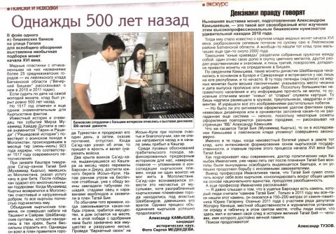 В фойе ОАО «Росинбанк» для всеобщего обозрения выставлена подборка монет начала XVI века по теме «2017 год – 500 лет образования кыргызской народности». Медные пластинки с отчеканенными на них названиями более 25 среднеазиатских городов из Ляйлякского клада Баткенской области (Вечерний Бишкек писал о нем 06 05 2011). Если судить по дате на самой «молодой» монете, клад укрыт ровно 500 лет назад, но 1517 год отмечен и еще одним знаменательным для Кыргызстана событием.