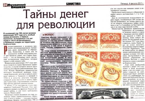 Статья в газете "Вечерний Бишкек" от 4 08 2017 " Тайна денег революции".