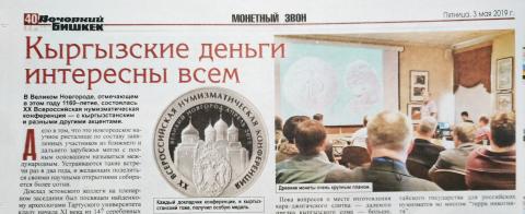 Доклад эстонского коллеги на пленарном заседании был посвящен найденному археологом Тартуского университета клада начала XI в. из 147 серебряных монет. В нем среди германских пфеннигов и англосаксонских пенни находились и восточные дирхамы династии Караханидов. В те времена столицей государства, раскинувшегося по всей территории Средний Азии, находилась в Баласагуне, более известного сегодня как городище Бурана. Установленный археологами факт, свидетельство того, что для высокопробных монет, дальние расстояние не являлись непреодолимой преградой. На этом фоне сообщение кыргызстанского нумизмата об обломке новгородской гривны, поднятой в районе городища Бурана, уже не являлось большой сенсацией. Зато заметный интерес вызвал похожий на новгородскую гривну серебряный слиток с городищ Кара-Джигач. (юго-восточная окраина Бишкека). Об этой находке «Вечерний Бишкек» сообщал в статье от 21 декабря 2018 г. «Древний сом был весо́м». По технологии изготовления и по размерам он заметно отличался и от нашедших широкое применении в XIV в. золотоордынских слитков, называемых поволжскими сомами (сумами). От этого тюркского слова и пошло название национальной валюты в Кыргызстане и Узбекистане. По мнению дальневосточного исследователя, прибывшего из Амурской области, подобные слитки отмечены и в их регионе. Пока вопросов о месте изготовления караджигачского слитка - далекого предка кыргызского сома - больше чем ответов, но главное он опубликован и введен в научное обращение.
